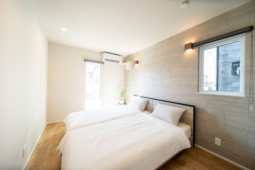 アクセントクロスがおしゃれな落ち着いたテイストの寝室