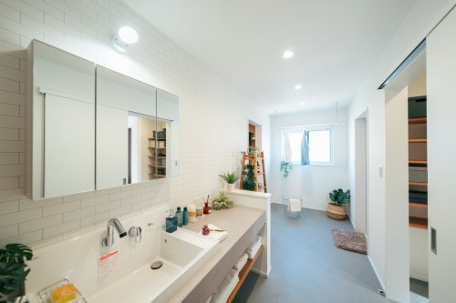 キッチンから水回りへもスムーズにつながり、広々とした洗面脱衣室では室内干しや家事も快適にこなせます。